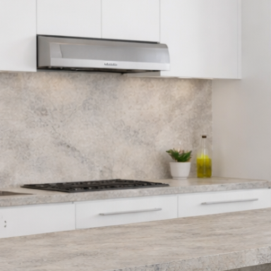 Ab einer Rückwandlänge von 2000 mm, die in eine Nische eingesetzt wird (Wand zu Wand oder Wand zu Hochschrank), empfehlen wir, in der Planung ausreichend Montage-Spielraum vorzusehen. So lässt sich die Rückwand sicher einsetzen, ohne Wand oder Hochschrank zu beschädigen – für ein sauberes Ergebnis von Anfang an.