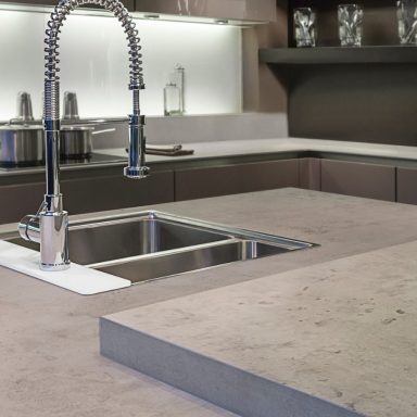 Bei Arbeitsplatten in 12 oder 20 mm Stärke sollte die Einbautiefe von Komponenten wie Spülen oder Kochfeldern frühzeitig mit eingeplant werden. Nicht alle Geräte sind für diese Stärken ausgelegt – gegebenenfalls ist eine Anpassung der Unterschränke erforderlich.