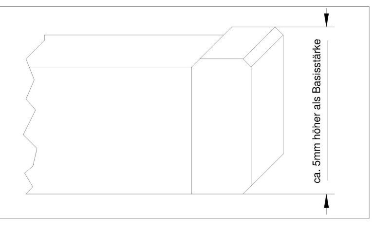 Für eine stabile Verbindung und zuverlässige Kraftübertragung benötigen Wangen – ausgenommen bei Blockkante – einen Fasenversatz von mindestens 3 mm. Dafür wird die Arbeitsplatte mit einem passenden Überstand geplant, damit Optik und Konstruktion perfekt zusammenspielen.